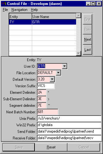 To create a new EDI controlling entity, the entity must exist in the ENTITY file. After choosing the EDI controlling entity desired, the user is asked for a user name, the default file location to use when a file location is not specified for a trading partner, as well as the default version, version suffix and delimiters. See the field descriptions section below for more details.