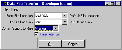 | To-file-locn | Enter the last file location for the range to transfer EDI data files for. Defaults to "zzzzzzzz", to process up to the last one on file. |