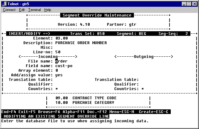 As mentioned in the introduction all partner specific mapping information should be done using the Segment Override function. Since both functions are the same they are presented here in the same topic. The only difference between them is that the Segment Override function allows for a partner field and the Segment Maintenance function does not.