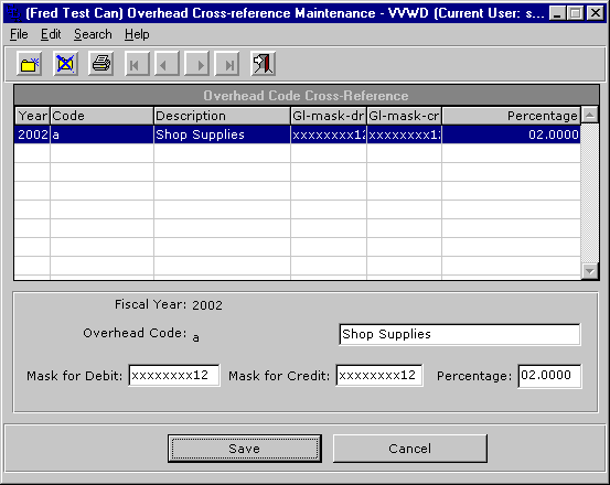 Overhead codes are used for applying an overhead to salary expenses. For every hour of an employees pay you may apply an overhead expense. This expense typically will be some fixed percentage of the original expense. For example if you are paying an employee 10 hours at 8.00 per hour you may want to accrue an overhead expense of 2% to the 80.00 (1.60) salary expense. The debit and credit accounts can be masked to the g/l codes used on the original expense. The following will illustrate this point: