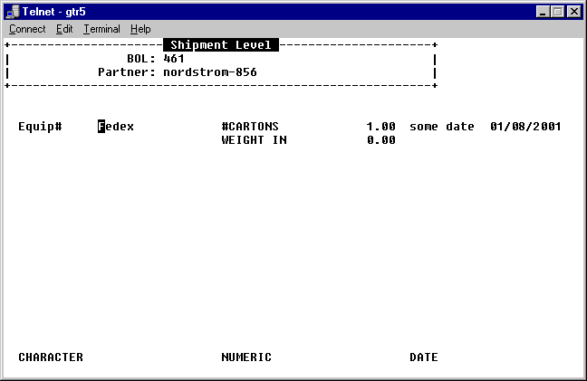 User defined field labels have been defined for the Carrier, Route, and Carrier Date. They have been defined in the ASN Partner control file.